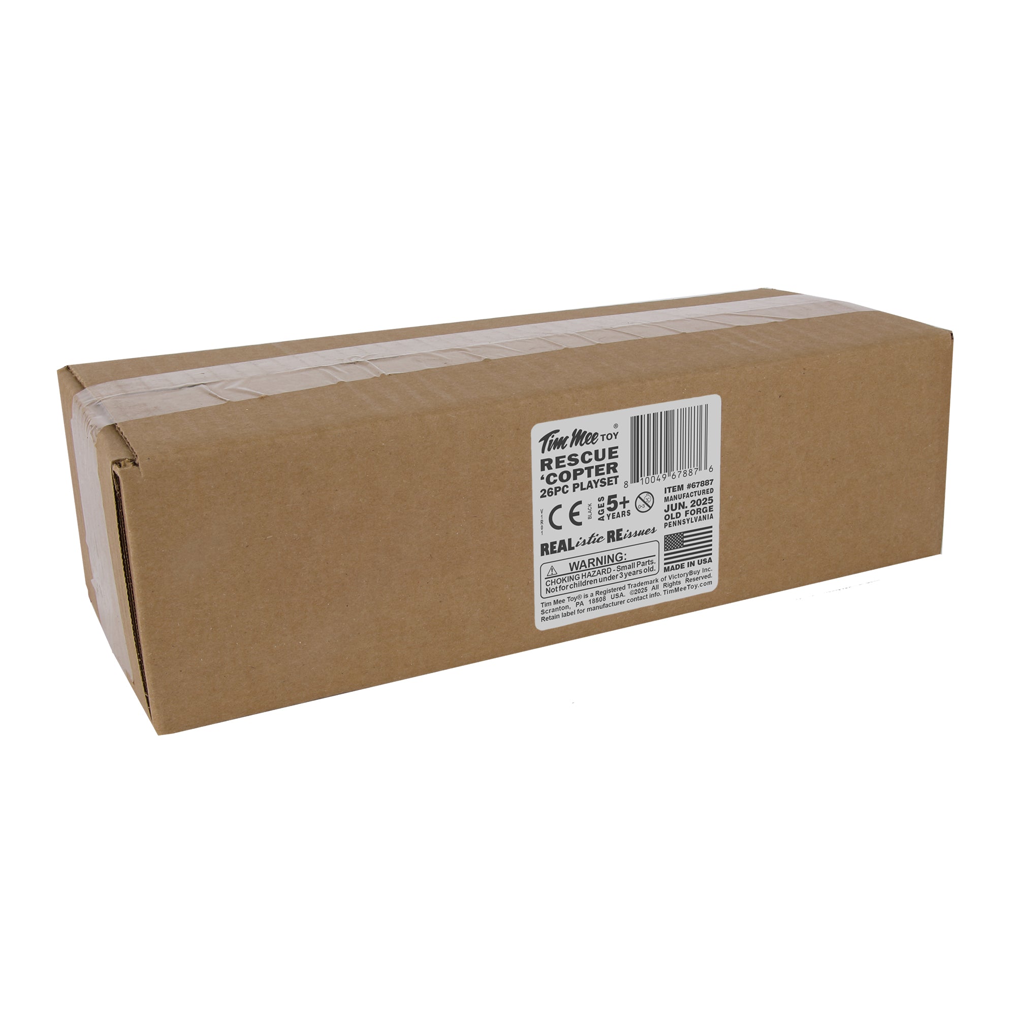 Air Extraction for your Plastic Army Men has arrived. The Tim Mee Toy Military Rescue 'Copter is once again proudly manufactured in the United States and available as this 26 piece Set. Set includes a Sea King Helicopter, American flag with base, and 2 dozen M16 Soldier figures. The chopper is modeled after the Sikorsky SH-3 and features spinning main rotor and stationary landing wheels. The fuselage measures 13 inches long, 3.25 inches tall and 3.75 inches wide. The aircraft is made from slightly stiff Black color HDPE plastic and the Soldiers are made from slightly flexible LDPE plastic, both have very little flashing. The helicopter is approximately 1:48 scale and the figures are 1:35 scale.