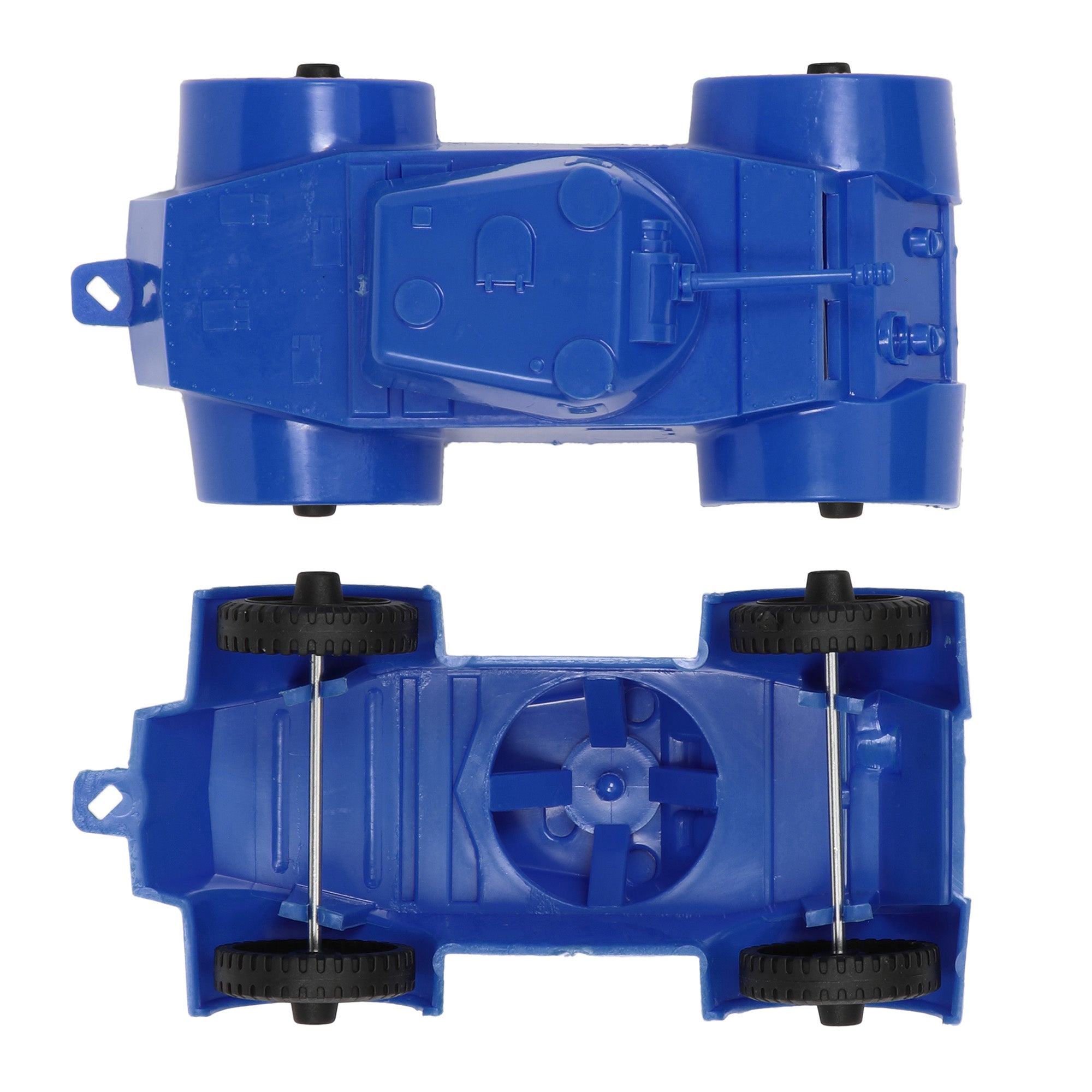 The Tim Mee Toy Staghound is ready to roll again. These Tim Mee Toy #76 Military Armored Reconnaissance Scout Vehicles are proudly manufactured in the United States. This 2 piece Set of Armored Cars feature turrets that rotate and smooth rolling metal axles. Each car measure 5.75 inches long and approximately 1:40 scale. Made from slightly stiff Blue color HDPE plastic with medium detail and a little flashing. This vehicle was modeled after the WW2 T17 Staghound and was produced in the 1950s by Processed Plastic Co. (Tim Mee Toy's parent company at the time). This 2025 version is the first production run since the 1960s and features a modified hitch compatible with the current Tim Mee Toy Combat Patrol M3 Artillery for maximum play value. This is real American made toy, meant to be rolled around, knocked over, picked up and played with for years to come. Packed in clear bag with insert card and includes optional sticker sheet to customize your vehicles. Recommended for ages 5 and up.